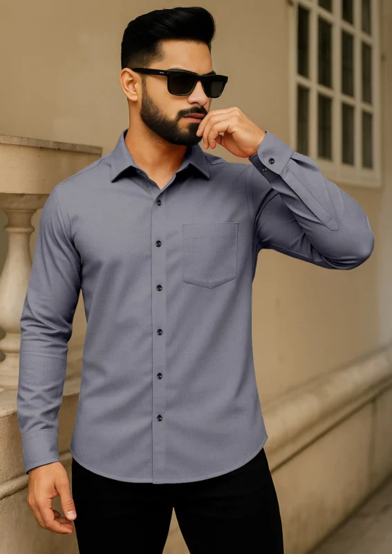 AITAVIK OVERSEAS 100% Cotton Regular Fit Solids Full Sleeves Men’s Casual Shirt – Grey ( Pack of 1 )