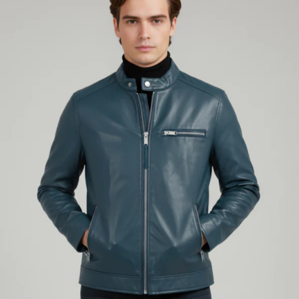 Men Blue Solid Regular Fit Polyester Jackets