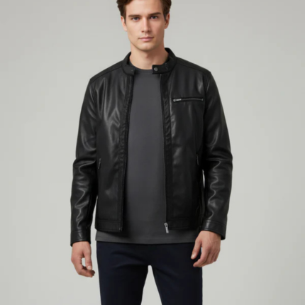 Men Black Solid Regular Fit Polyester Jackets