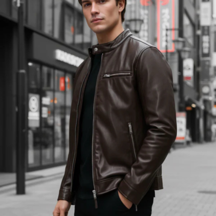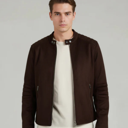 Men Brown Solid Regular Fit Polyester Jackets