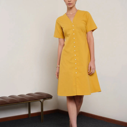 Cotton A-Line Dress – Yellow