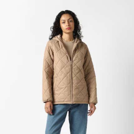 Women Beige Textured Casual Jacket