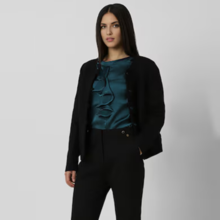 Women Black Solid Casual Jacket