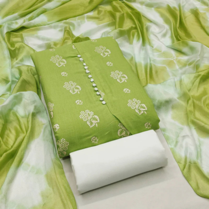 Green Floral Printed Cotton Blend Dress Material