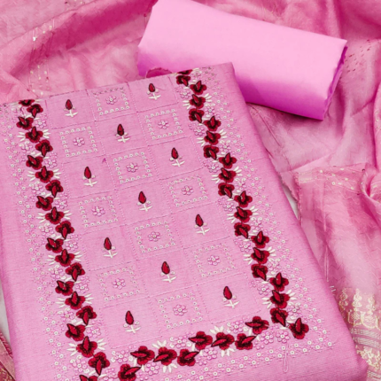 Navy Blue Printed Cotton Blend Dress Material