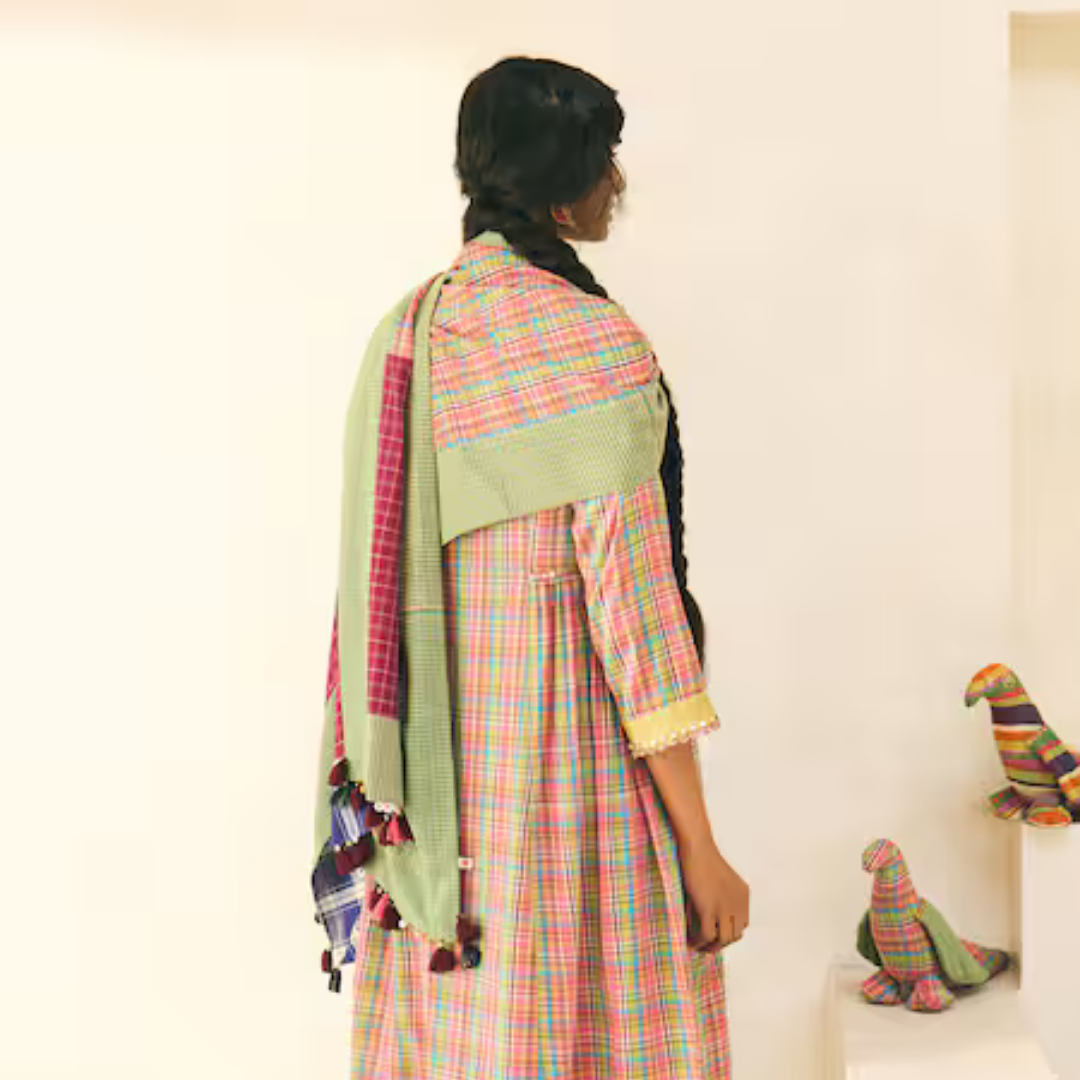 The Aura stole embodies minimalist luxury with its fine, handwoven fabric and delicate, natural texture. Its soft, breathable quality makes it an ideal accessory for transitioning between seasons, whether draped over a kurta or a western dress. The understated design allows its superior craftsmanship to shine, lending an aura of effortless grace to any ensemble.