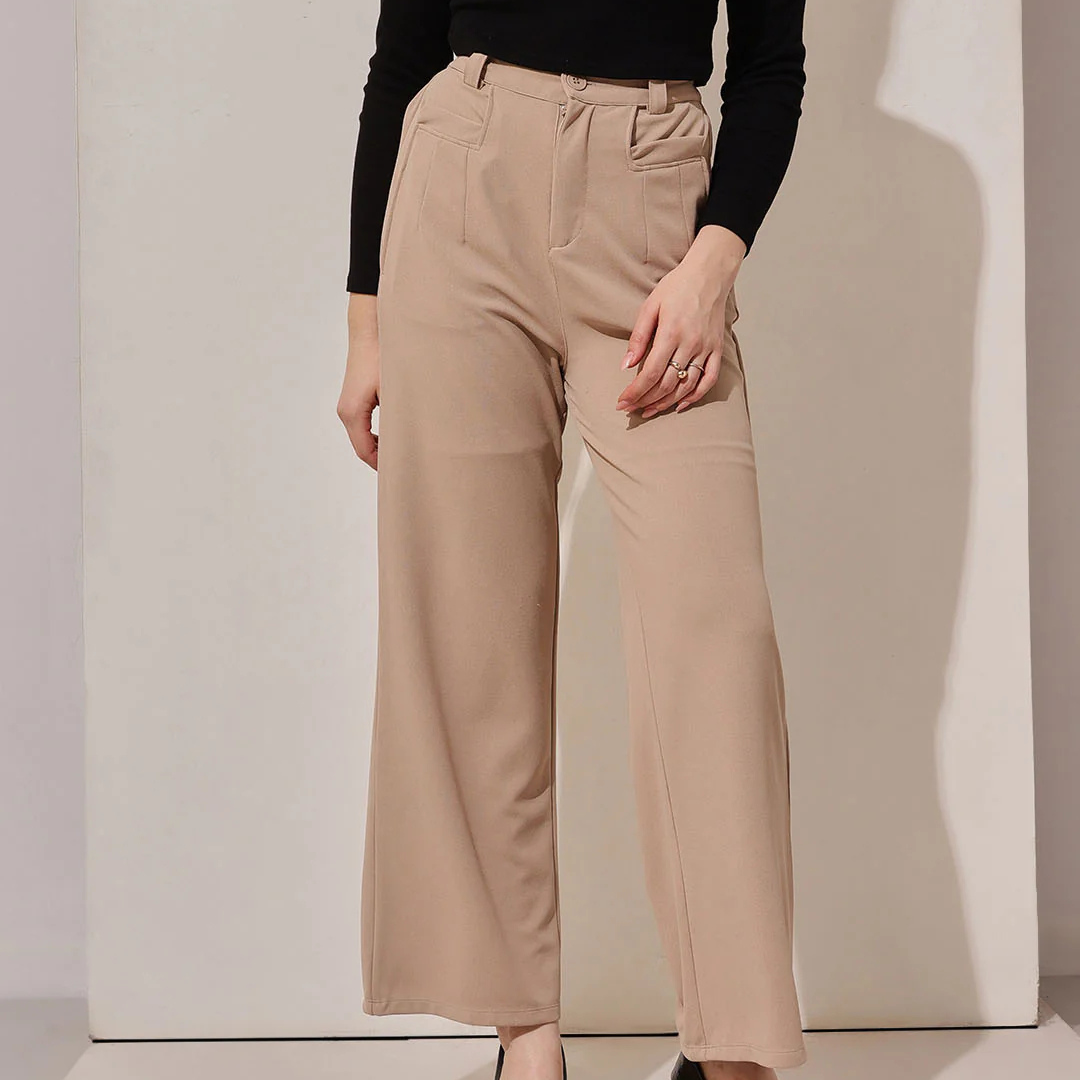 A fresh take on a classic, these beige basic trousers are your go-to for effortless, everyday style. Simple, chic, and endlessly versatile.