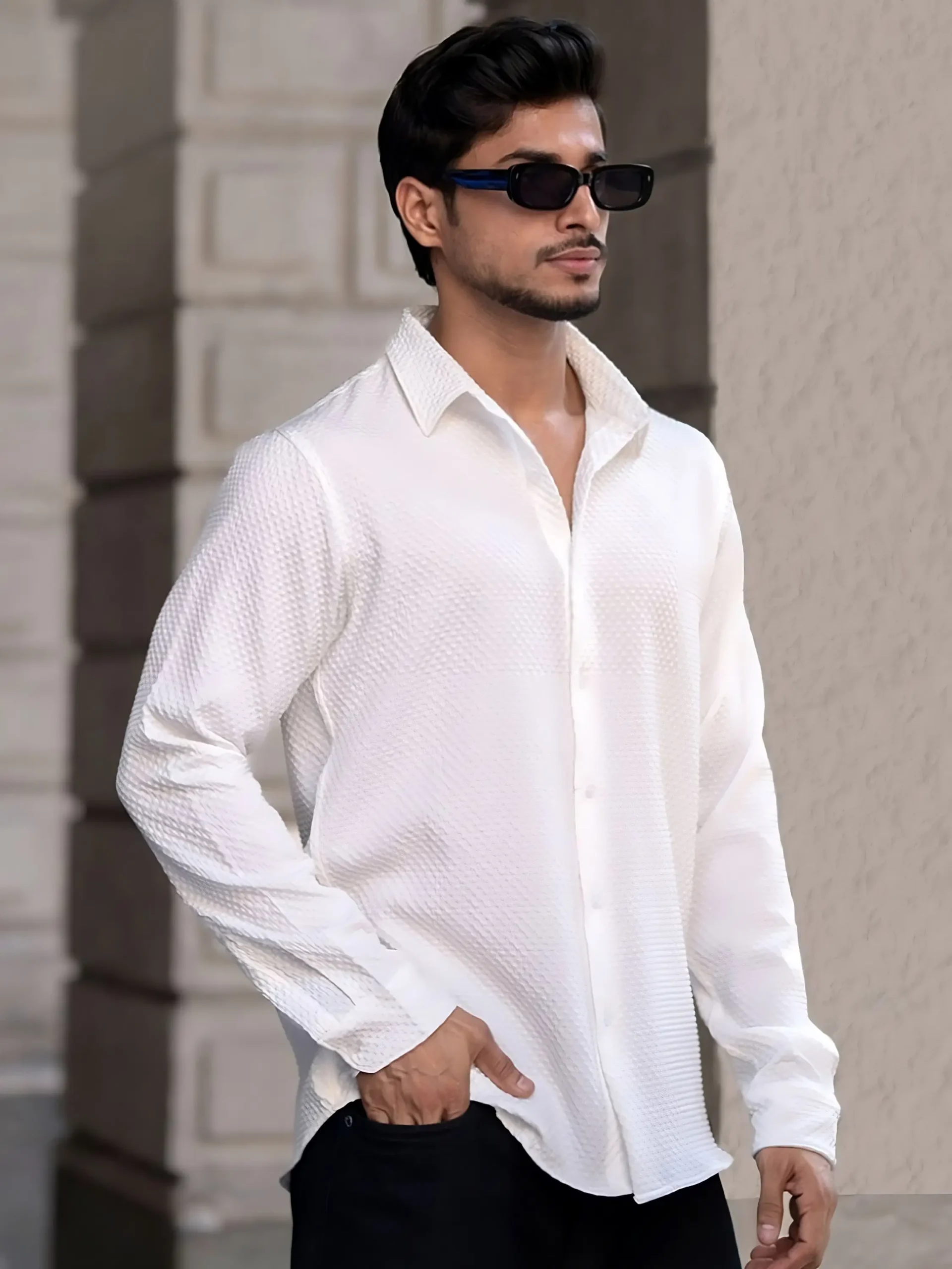 color bucket Cotton Blend Regular Fit Popcorn Textured Full Sleeves Men’s Casual Shirt – White ( Pack of 1 )
