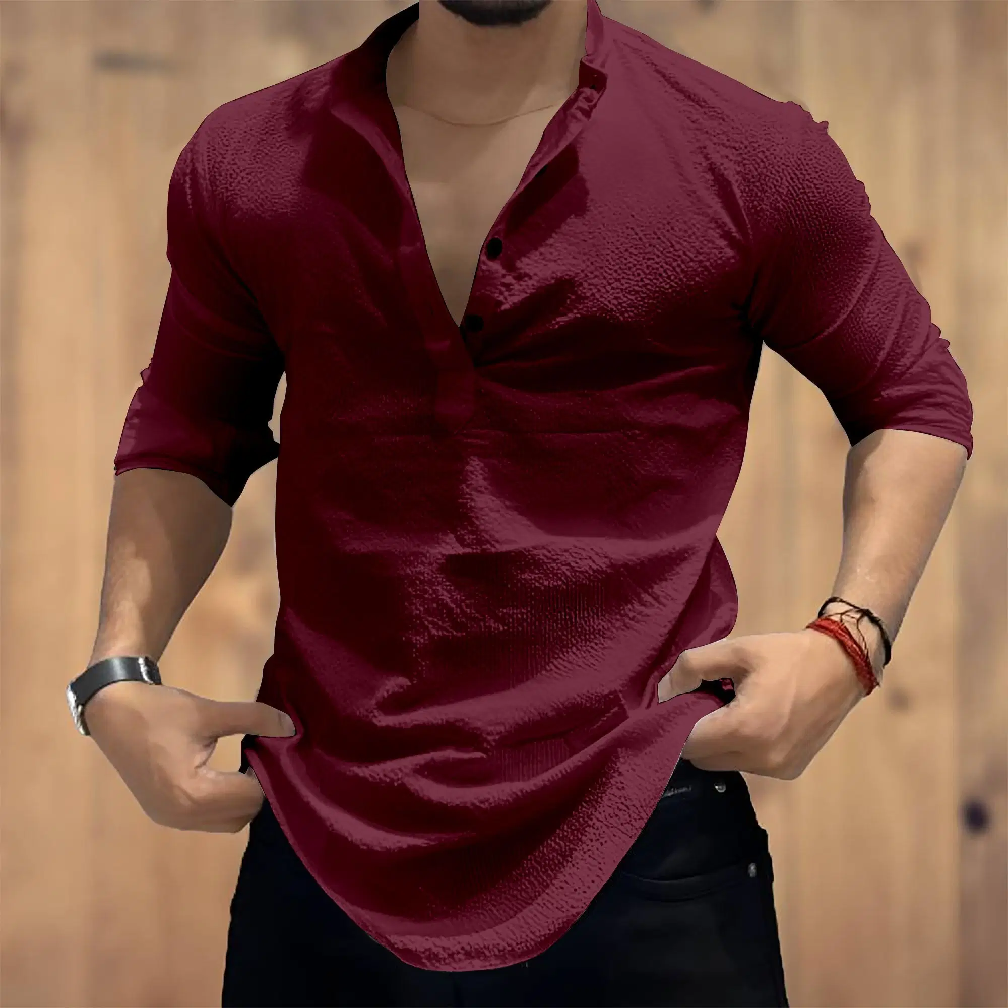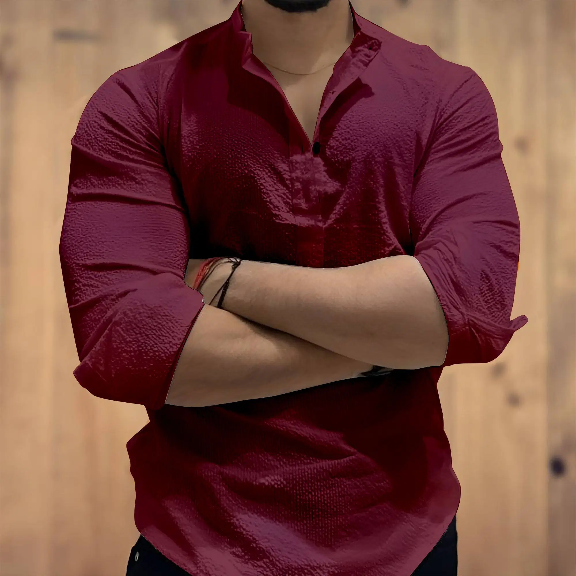 Home Men Fashion Shirt COMBRAIDED Cotton Blend Regular Fit Solids Full Sleeves Men’s Casual Shirt – Maroon ( Pack of 1 )
