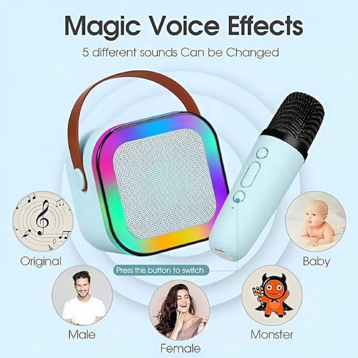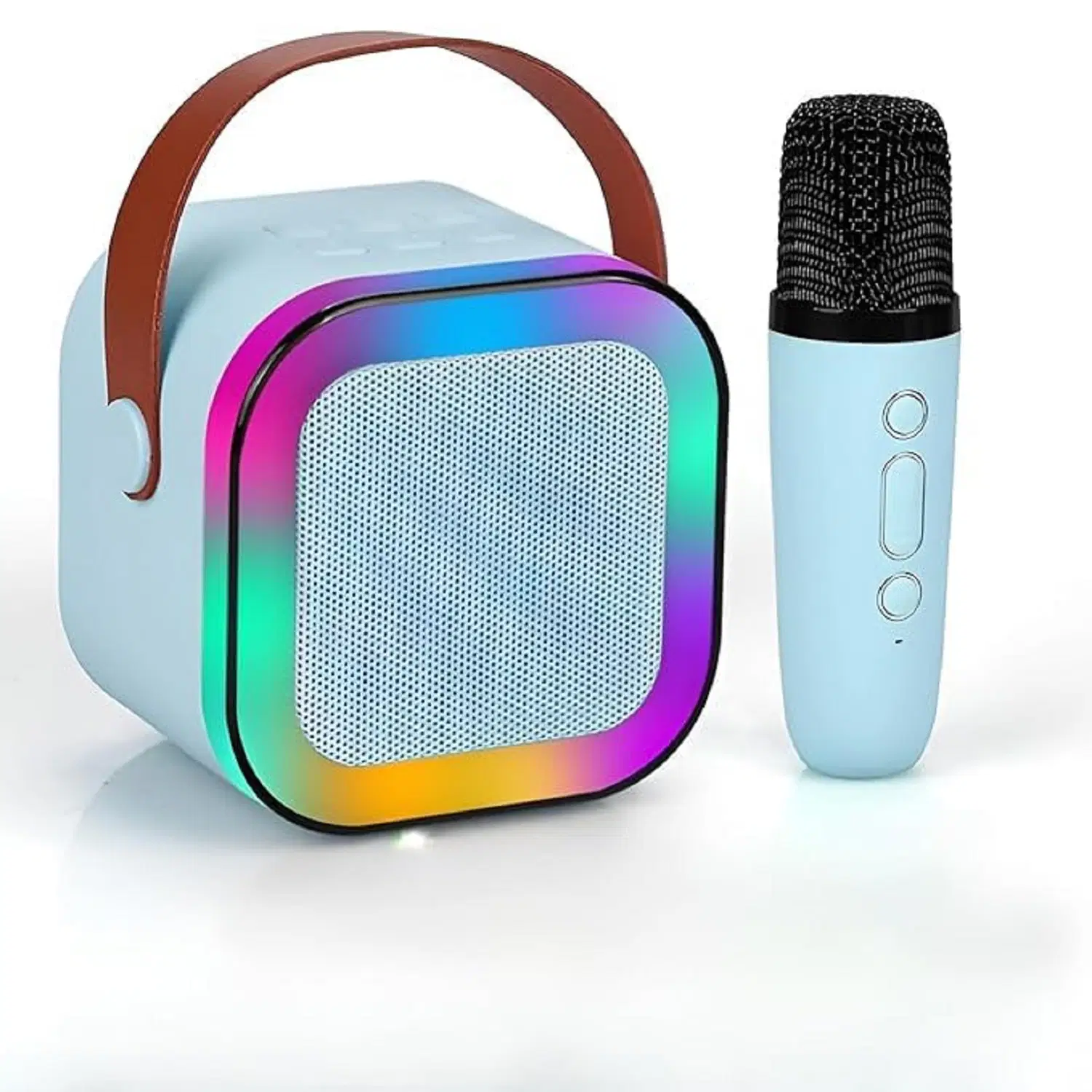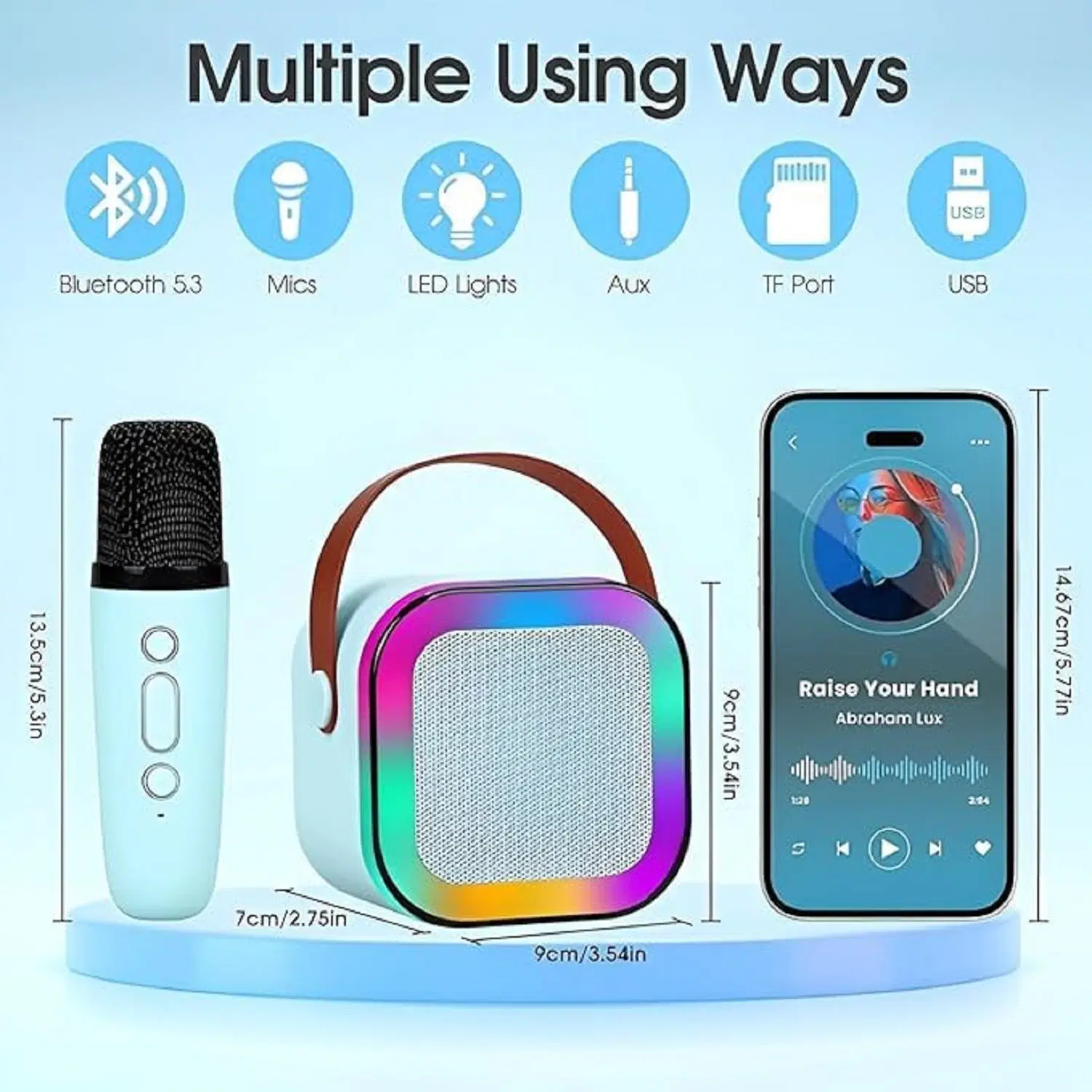 【Small Body,Powerful Sound】The mini karaoke machine has powerful and clear sound,our speakers will provide you with deep bass and crisp treble, with dual speakers, strong three-dimensional effect and has the feature of LED light,Fill the atmosphere of singing