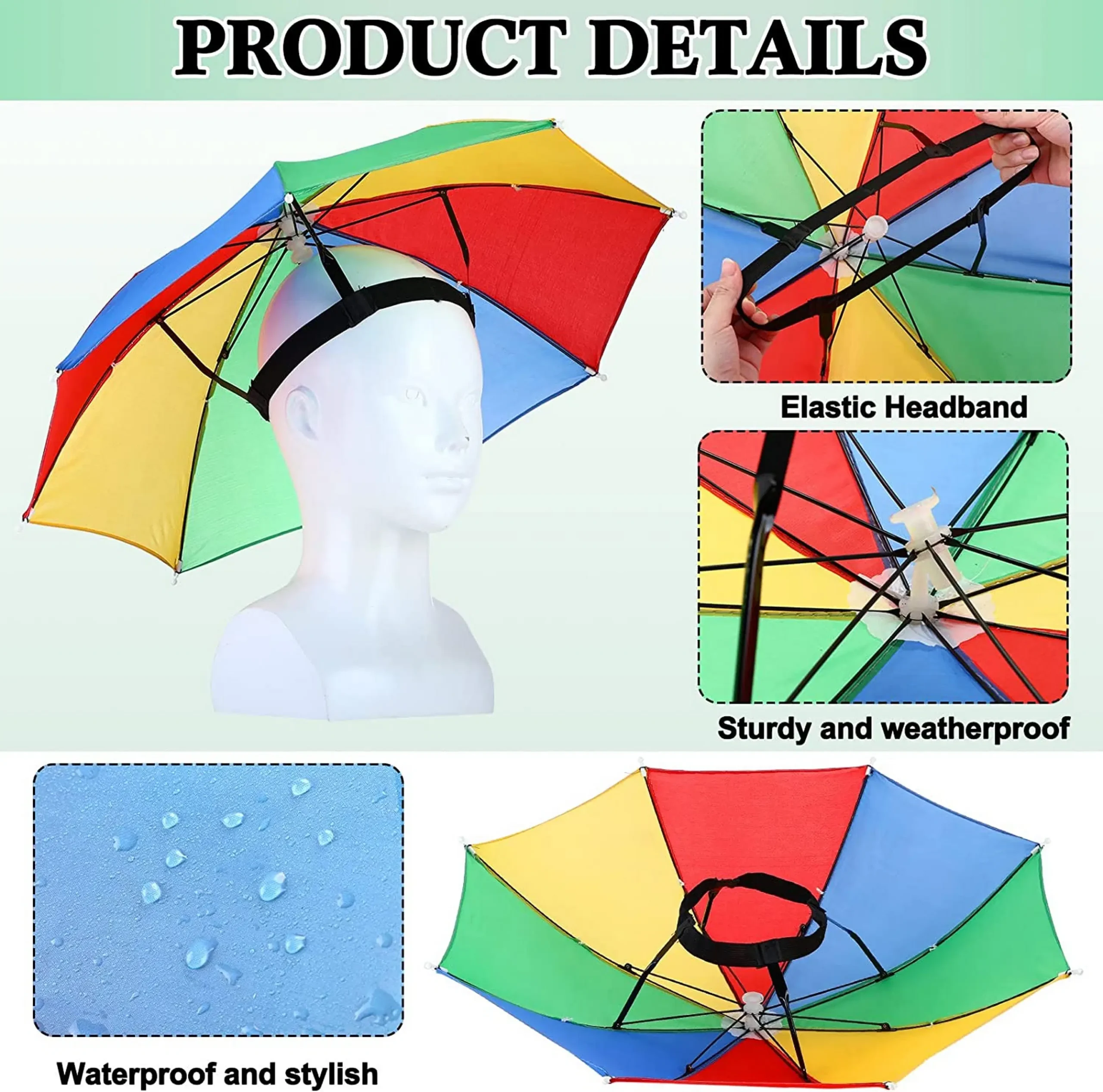 Infispace Headwear Cap Umbrella Multi Color Soft Durable, Adjustable Elastic, (21) Size Fits All Ages Plastic Hat Cap Umbrella for Kids, Men/Women and Adults Rain Protection Headwear Hat Umbrella (Multi) Pack of 1