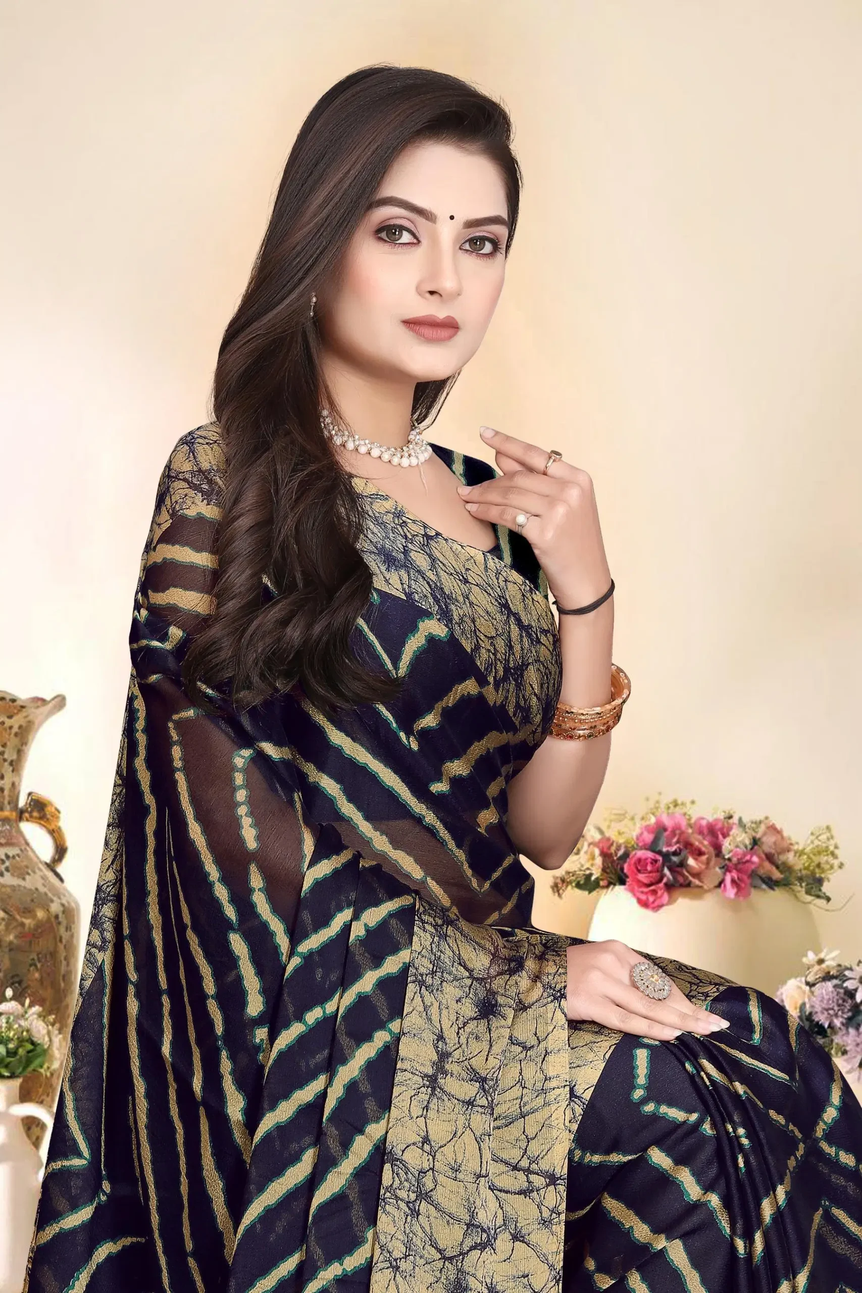 Be the first to review “Magneitta Chiffon Printed Saree With Unstitched Blouse Piece ( Black )” Cancel reply