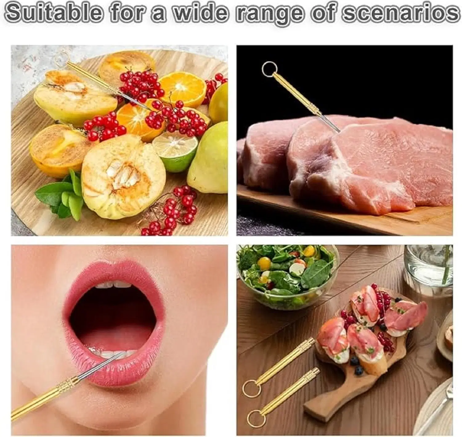 VERSATILE DESIGN: Elegant brass toothpick holder with keyring attachment, perfect for dining, food sampling, and various practical uses