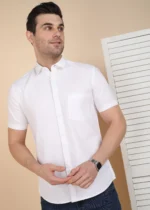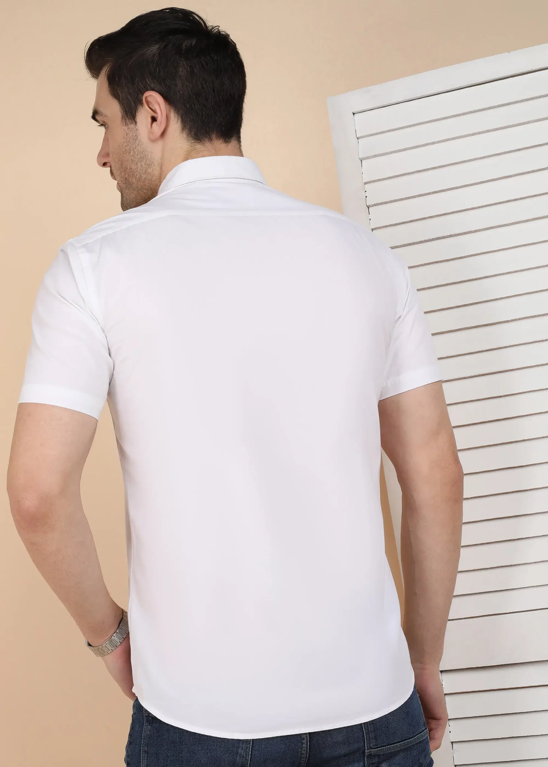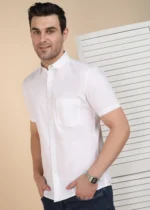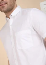 Home Men Fashion Shirt SAM & JACK 100% Cotton Slim Fit Solids Half Sleeves Men’s Casual Shirt – White ( Pack of 1 )
