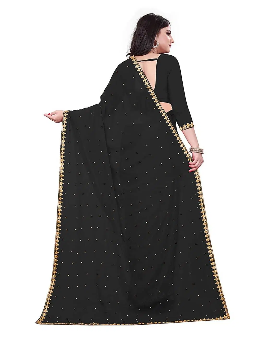 Be the first to review “Suali Lycra Embellished Regular Saree With Unstitched Blouse Piece ( Black )” Cancel reply