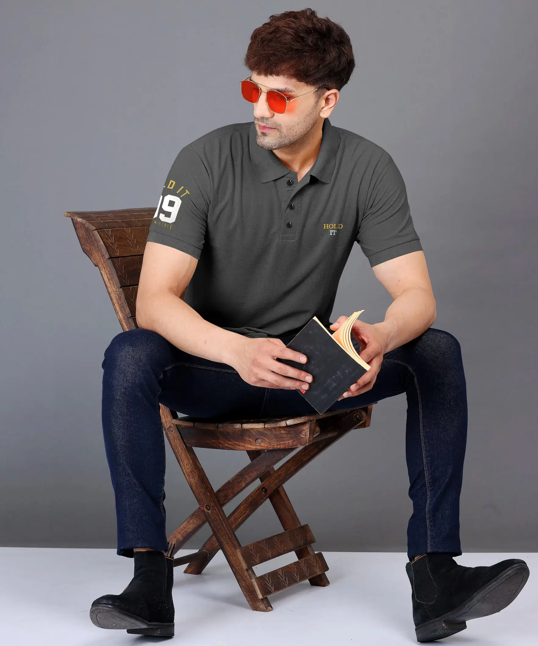TAZO Pack of 1 Cotton Blend Regular Fit Self Design Half Sleeves Men’s Polo T Shirt ( Grey )