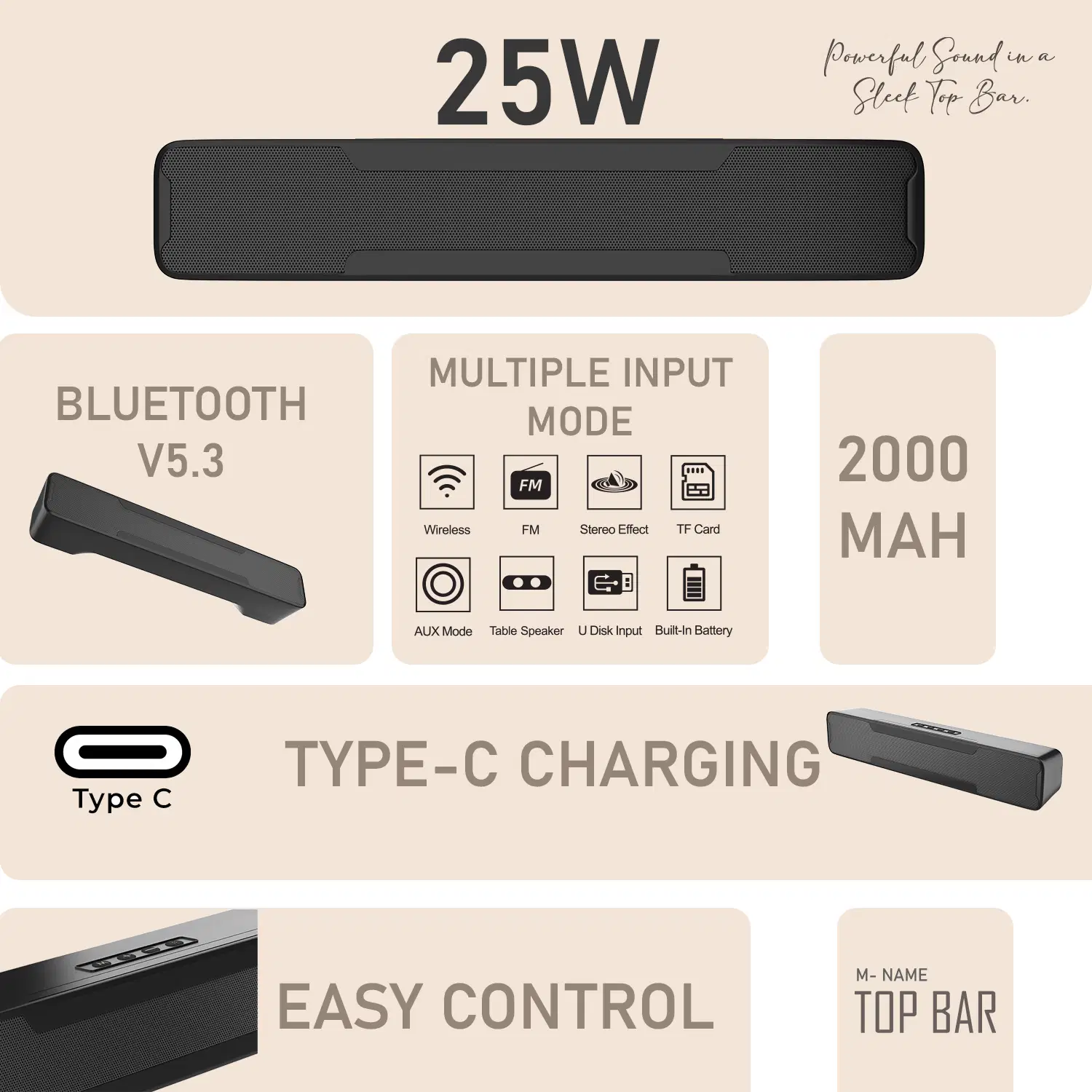 V WORTEX TOP BAR 25 W Bluetooth Speaker Bluetooth v5.0 with USB,SD card Slot,Aux Playback Time 5 hrs Black