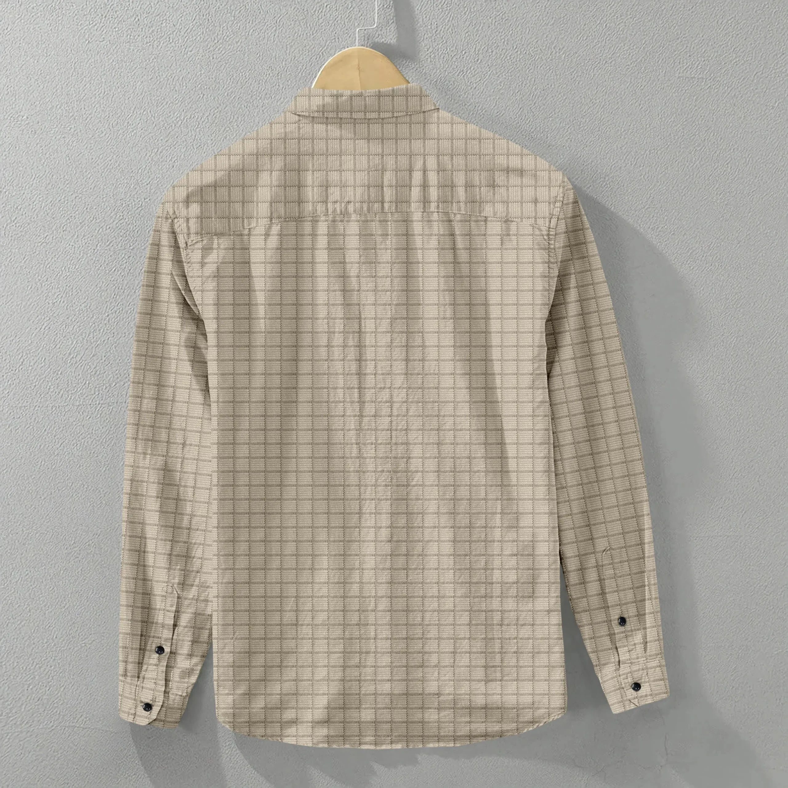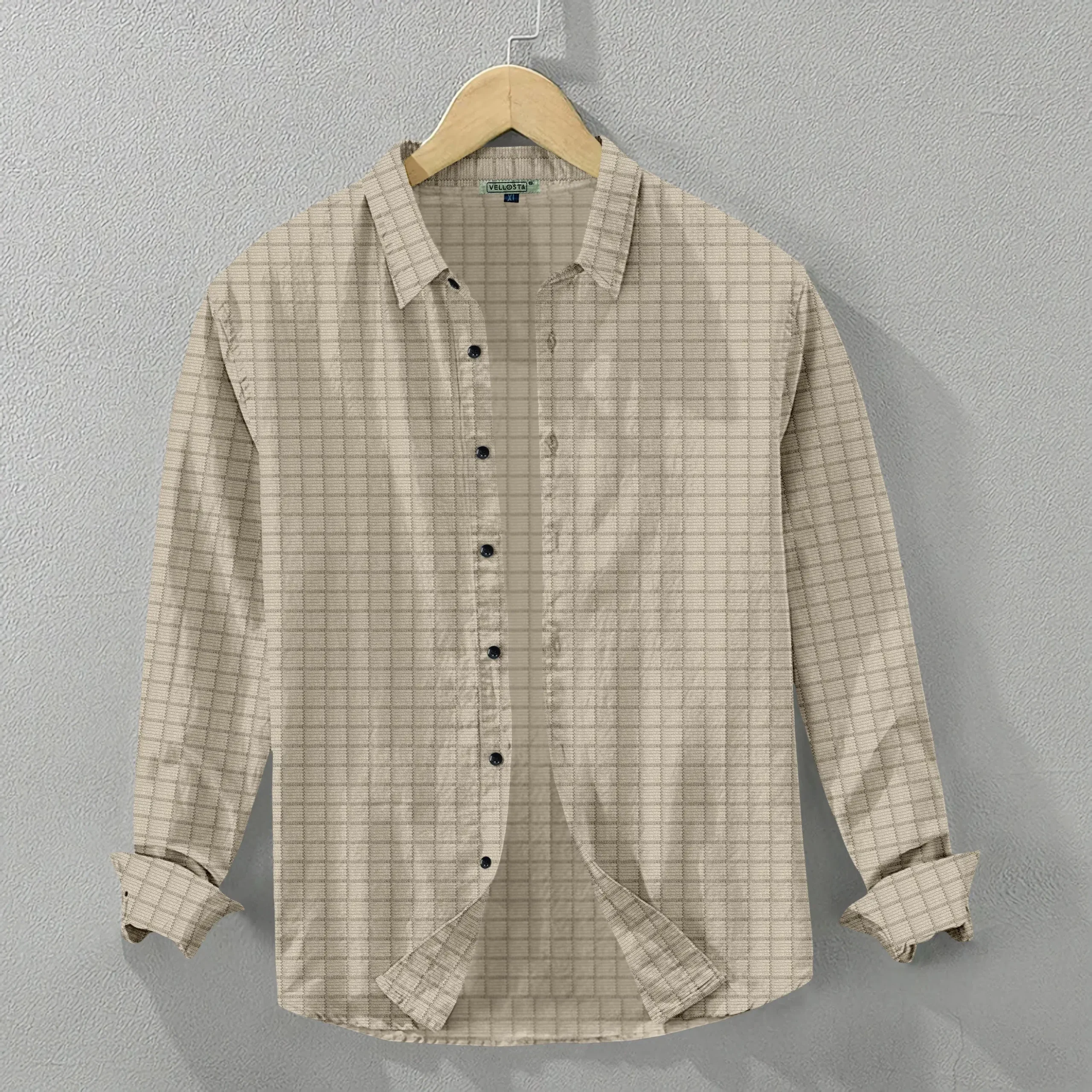 VELLOSTA Polyester Regular Fit Self Design Full Sleeves Men’s Casual Shirt – Beige ( Pack of 1 )