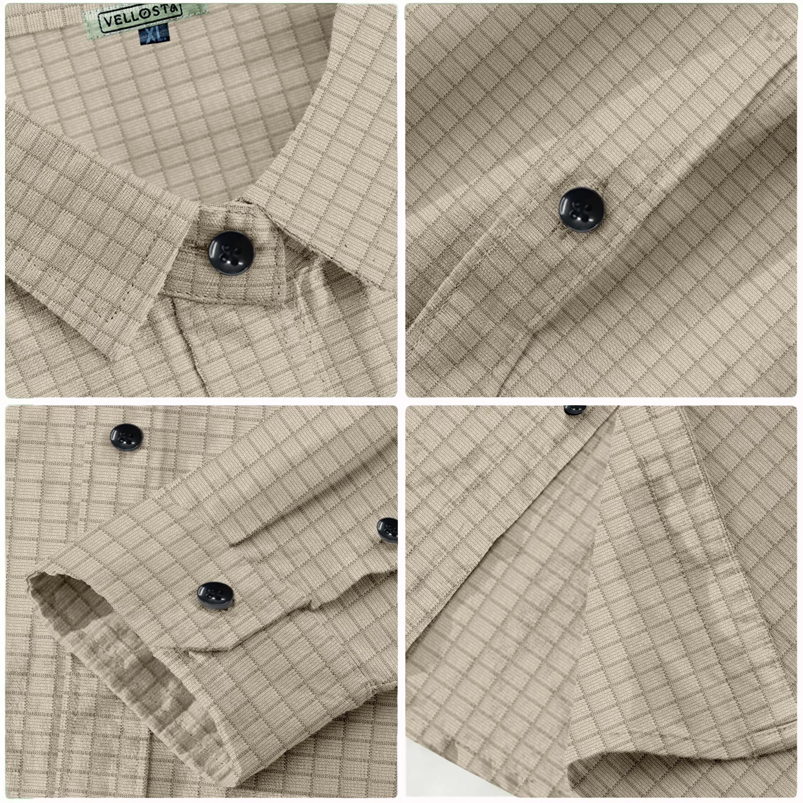 Home Men Fashion Shirt VELLOSTA Polyester Regular Fit Self Design Full Sleeves Men’s Casual Shirt – Beige ( Pack of 1 )
