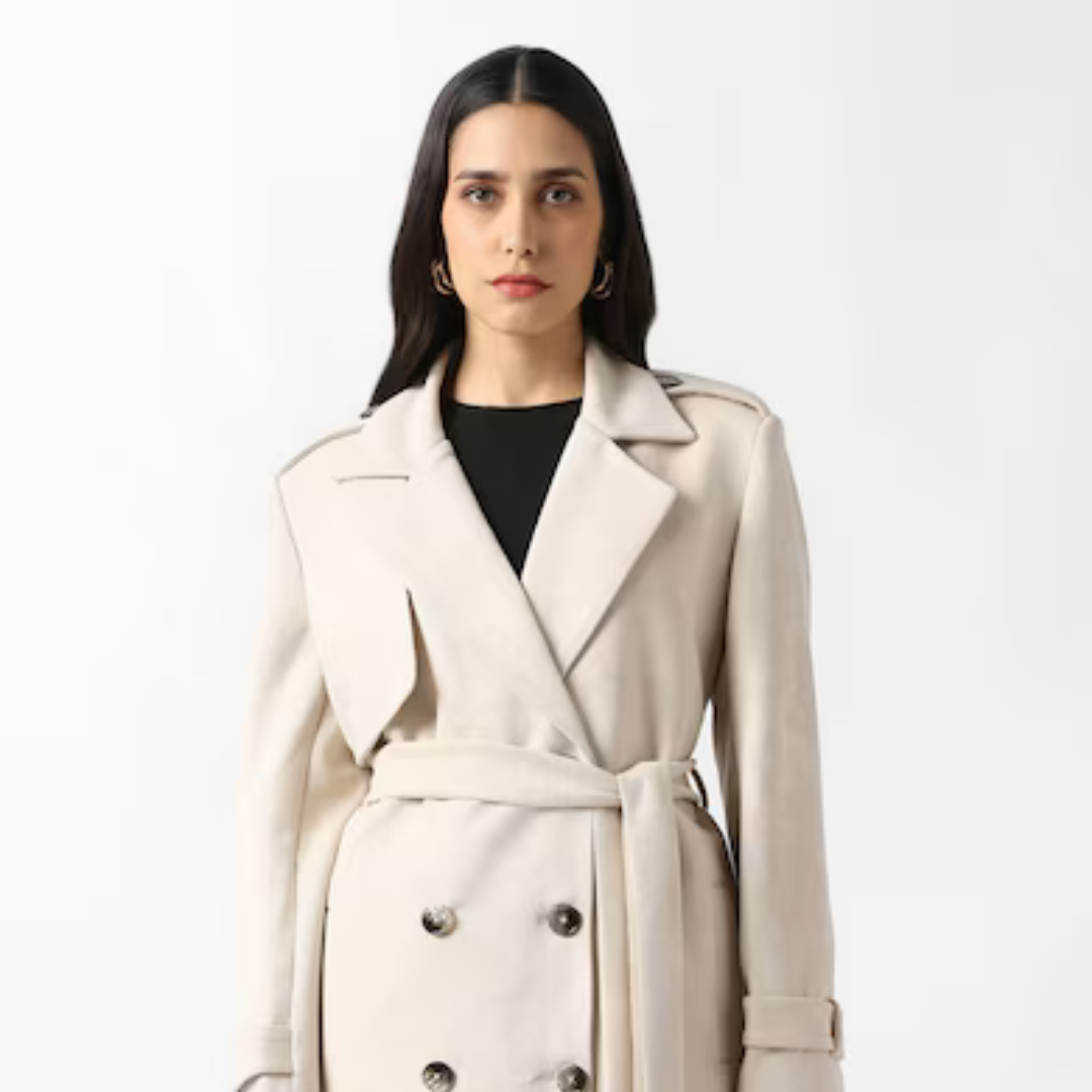 Be the first to review “Women Beige Solid Belted Trench Coat” Cancel reply
