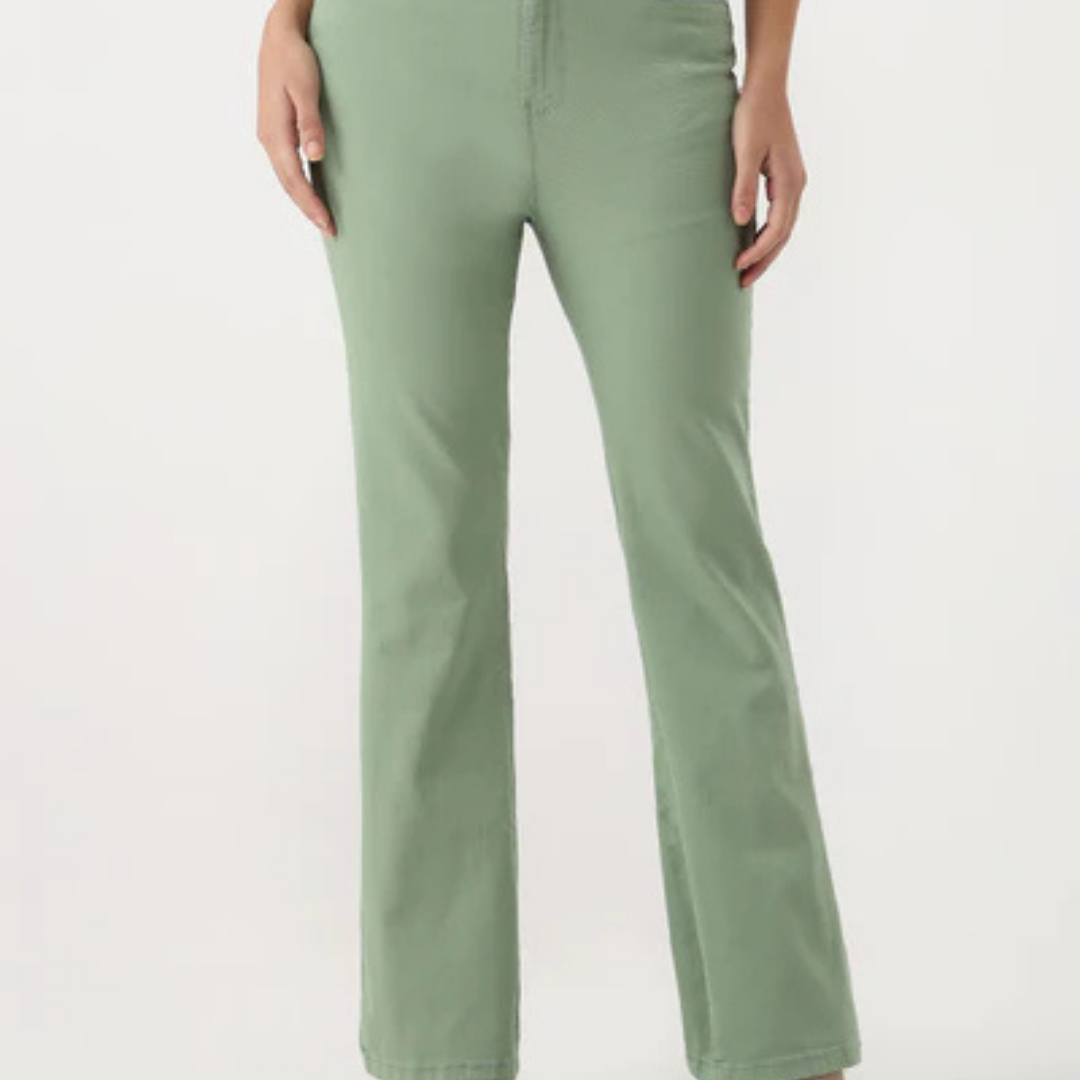 Turn heads with these eye-catching mint green flare jeans. The soft, cool hue is a refreshing alternative to traditional denim colors and adds an instant pop of personality to any outfit. Combined with the flattering high-rise waist and dramatic ’70s-inspired flare leg, these jeans create a long, lean, and utterly stylish silhouette that’s perfect for making a confident statement.