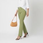 These olive green flare jeans are the perfect way to add a ’70s-inspired silhouette to your wardrobe. The high-rise waist cinches you in and elongates your legs, while the dramatic flare from the knee creates a balanced and flattering shape. The unique olive hue offers a stylish alternative to classic blue, making them a standout piece you can dress up with heels or keep casual with sneakers.
