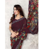 Yashika Women’s Printed Trendy Georgette Green Color Saree With Blouse Material