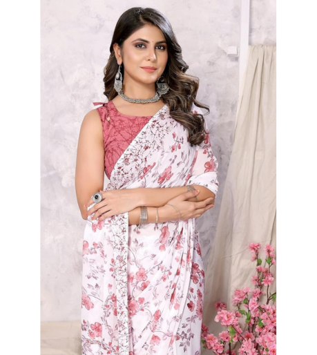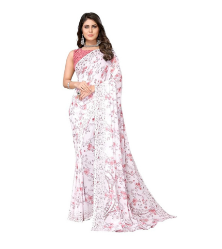 Yashika Women’s Trendy Printed Georgette Red Color Saree with Blouse Material